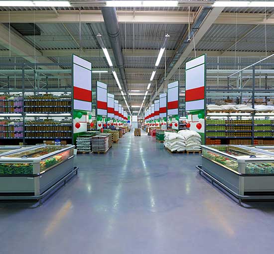 KASCO dessert des supermarchés et des épiceries entiers, y compris le comptoir des viandes et des fruits de mer, la charcuterie, le rayon des produits frais et la boulangerie.